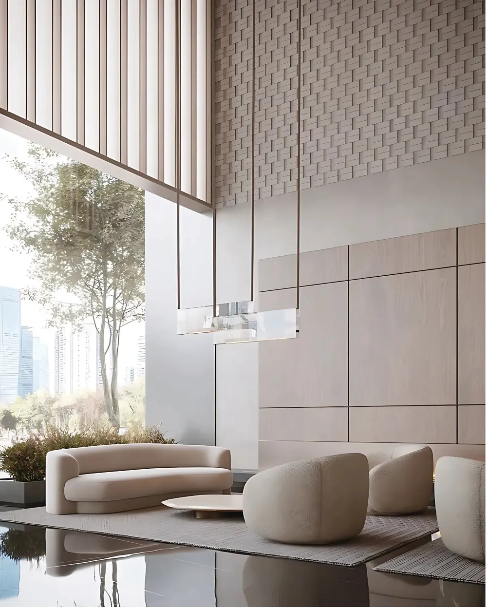 The building’s sculptural form and sleek finishes redefine modern living, turning your home into a sanctuary.